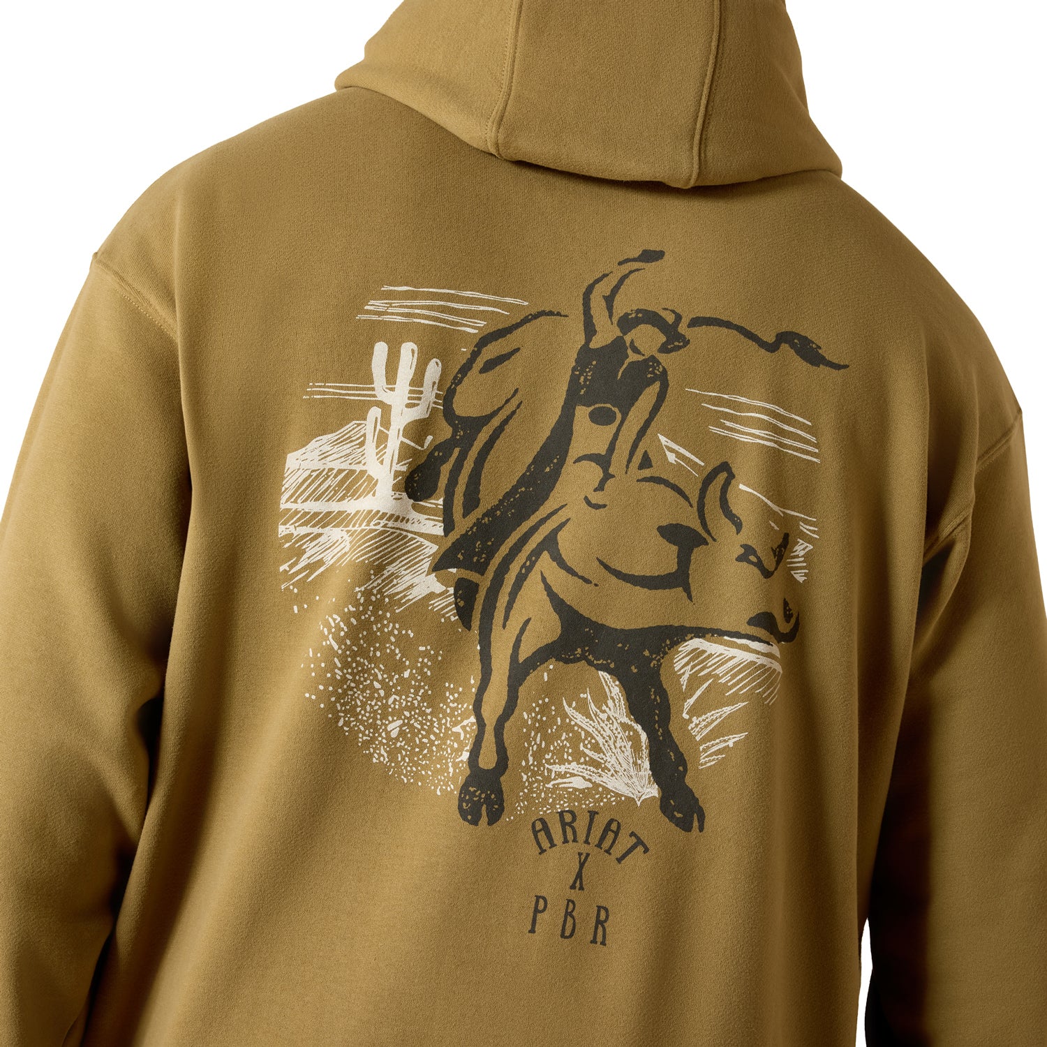A collaboration forged in the arena, celebrating bravery, skill and the spirit of Western heritage. Ariat is proud to outfit PBR fans nationwide with gear built to withstand all 8 seconds--and then some. This comfy, 100% cotton hoodie is a staple piece for any PBR fan, featuring a western design on the back, fitted, ribbed hems, and a front kangaroo pocket. Grab yours today!